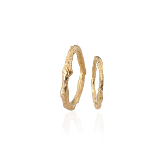 Handcrafted branch textured wedding bands available in 14k and 18k gold. Wood symbolizes strength and resilience. Like the sturdy trunk of a tree, it represents the ability to withstand the tests of time and adversity. The...Regular price From 7,400.00 Lei -